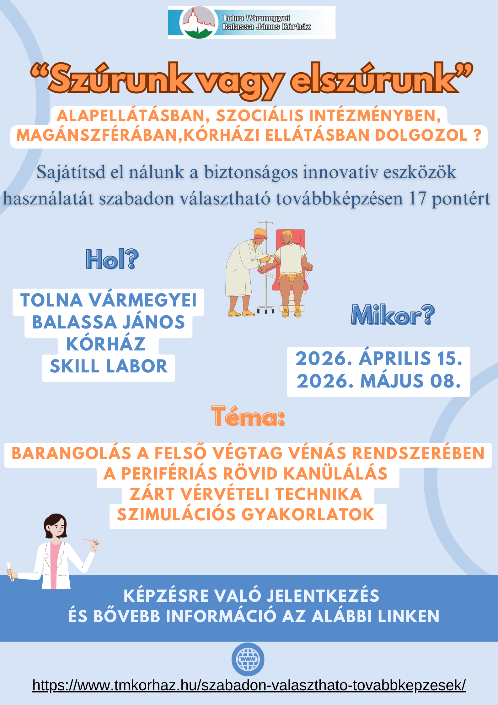 „Szúrunk, vagy elszúrunk” képzés 2026. április 15. Skill laborJelentkezési lap 2026-04-15Jelentkezési lap 2026-05-08 plakát Ugrás a navigációs menüre